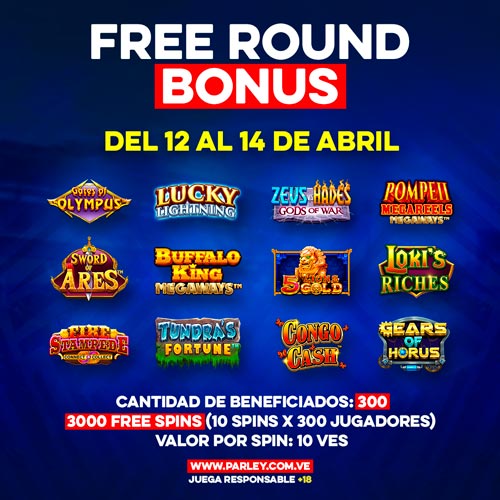 ¡Queremos premiarte por tus jugadas! Obtén 10 jugadas gratis jugando con los “Dioses y Criaturas”, nuestra primera fecha inicia 12 de abril hasta el 14 de abril y la segunda fecha inicia el 26 de abril hasta el 28 de abril, solo debes ingresar a los siguientes slots: Gates Of Olympus, Lucky Lightening, Zeus vs Hades, Sword of Ares, Buffalo King Megaways, 5 lions, Gold , Fire stampede, Tundra´s fortune , Congo Cash , Pompeii Megareels, Megaways , Loki´s riches y Gears of Horus, estaremos premiando a los primeros 300 usuarios por un valor de spin de 10 Bs.